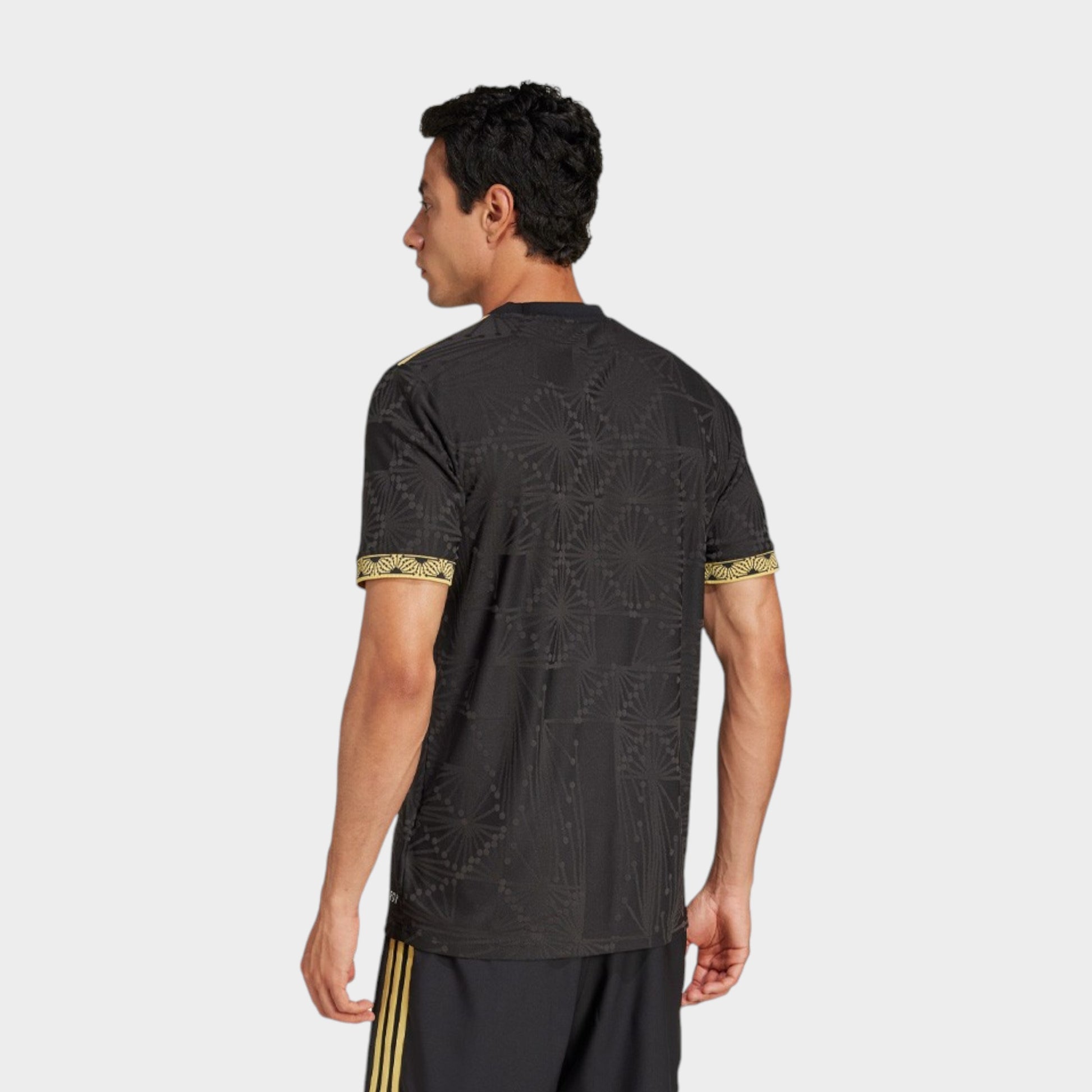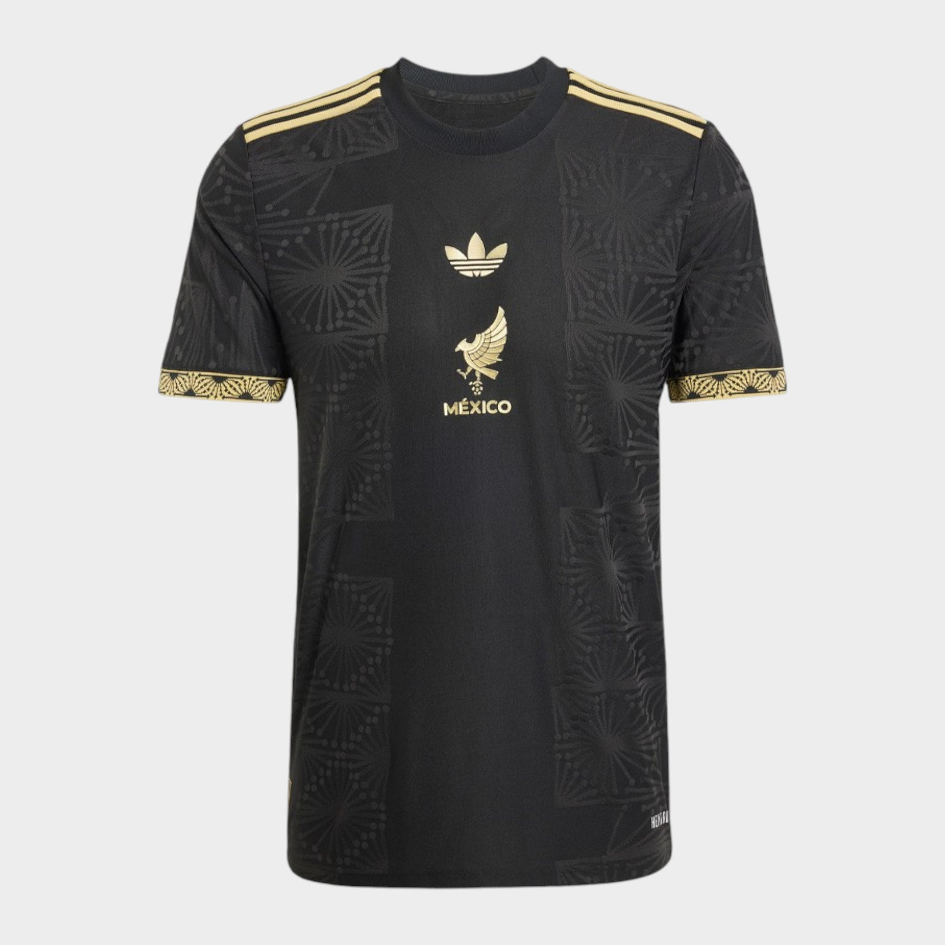 Este jersey adidas de México celebra los años dorados de la cultura y deporte en México diseñado con detalles en negro y dorado está inspirado en el esplendor de la música y el arte mexicanos. Confeccionada para garantizar un máximo rendimiento en el terreno de juego y un confort excepcional fuera de él, incorpora la tecnología transpirable HEAT.RDYperfecto para salir a darlo todo en la cancha. El escudo de la selección en dorado pone el broche de oro a su look futbolístico.