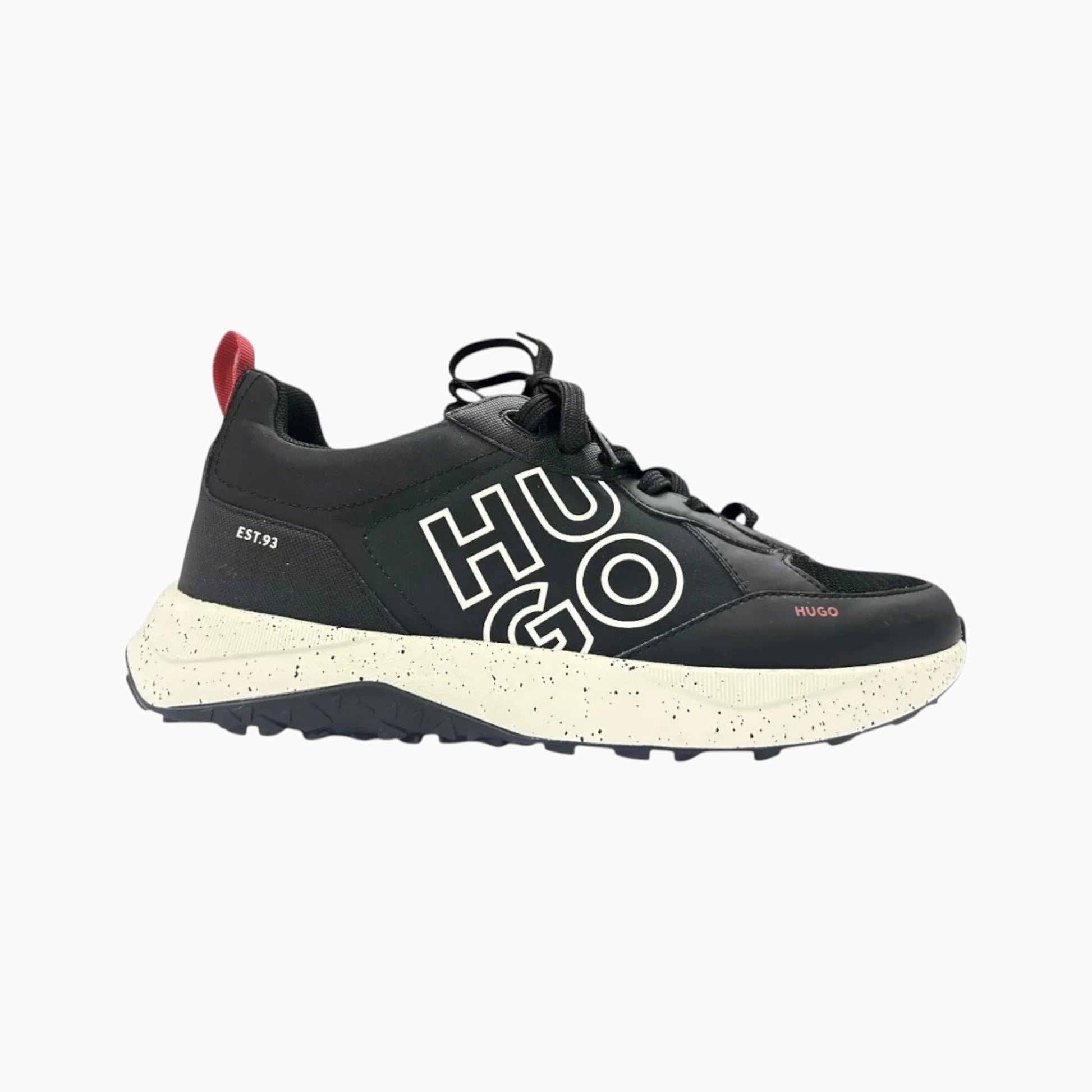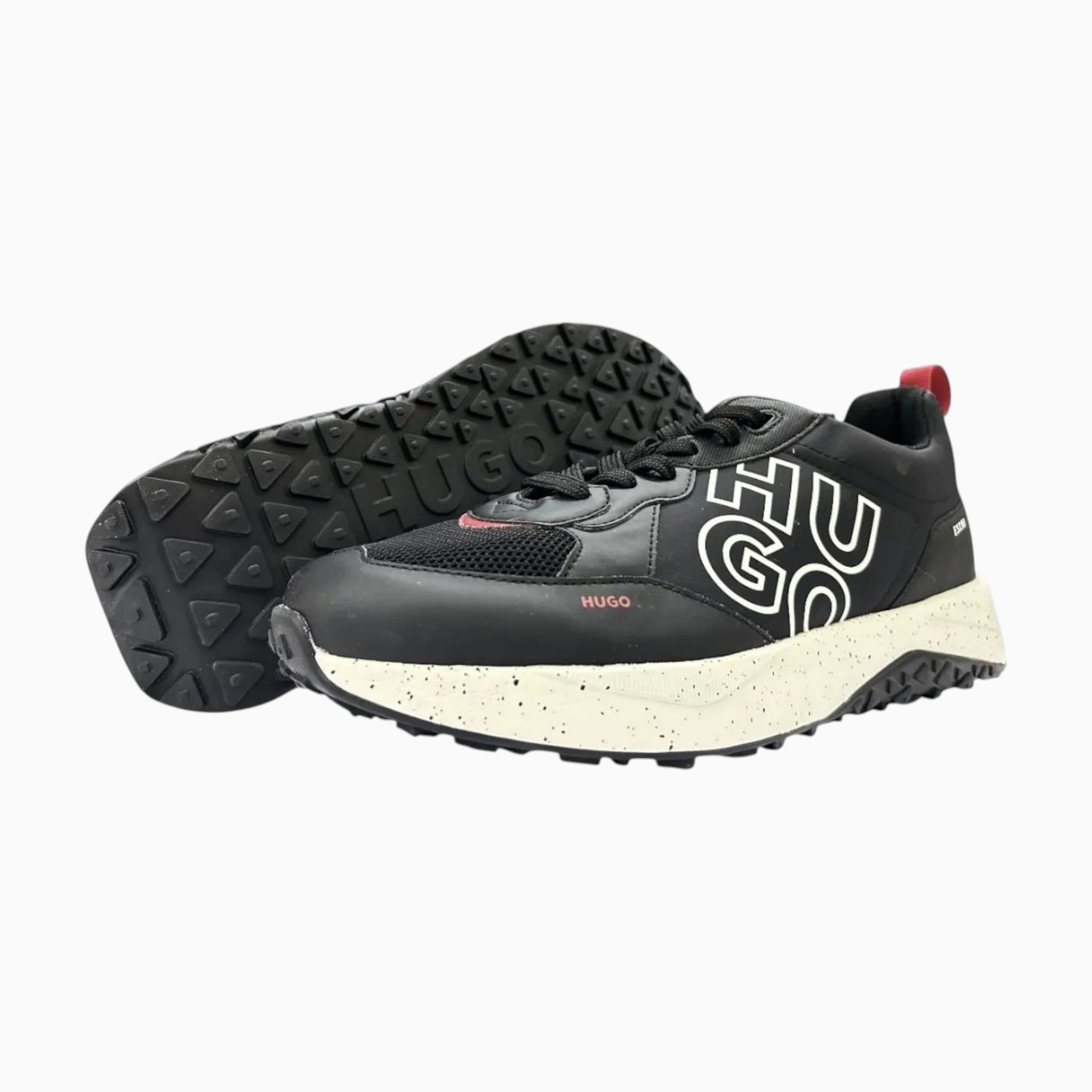 - Detalles llamativos y la marca HUGO en contraste.