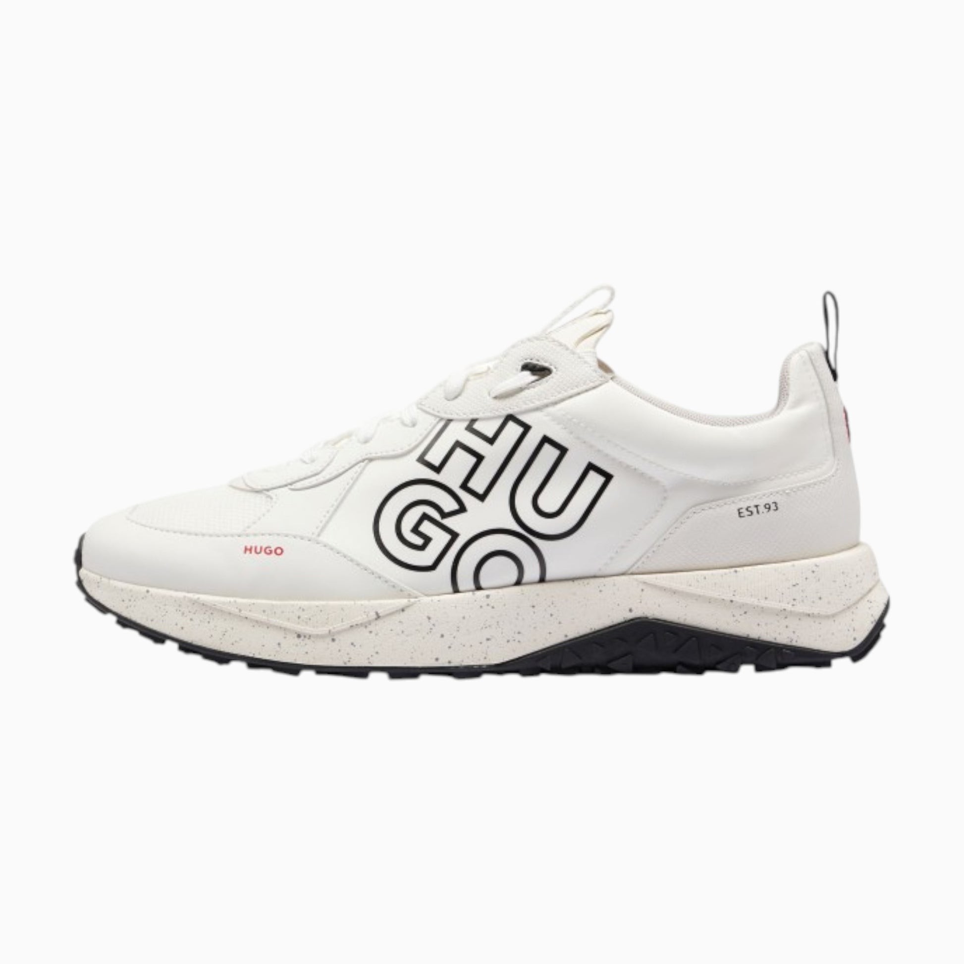 - Detalles llamativos y la marca HUGO en contraste.